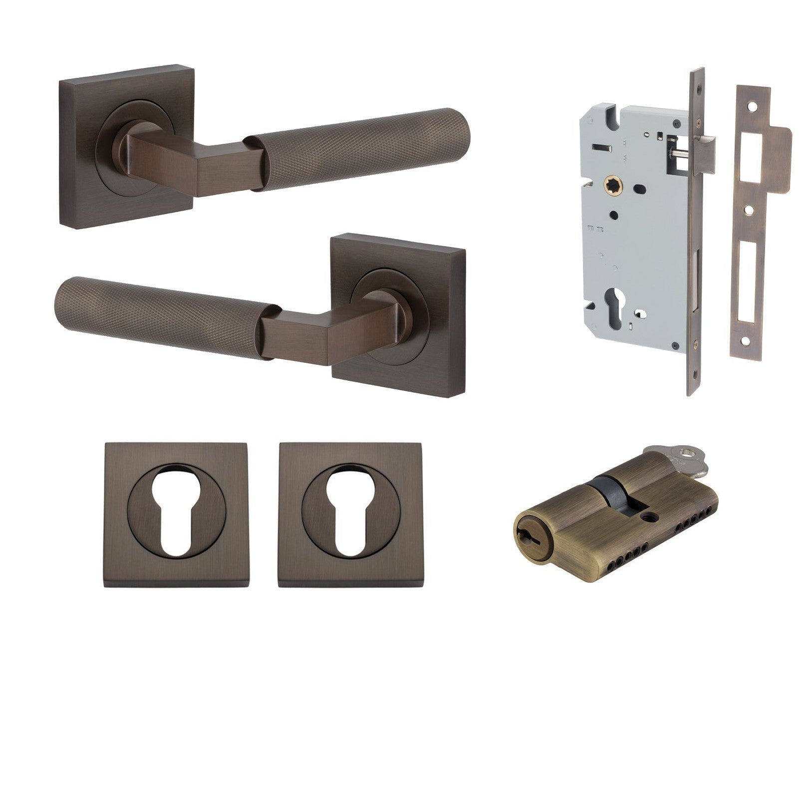 Iver Door Handle Brunswick Rose Square Pair Key/Key Signature Brass Entrance Kit