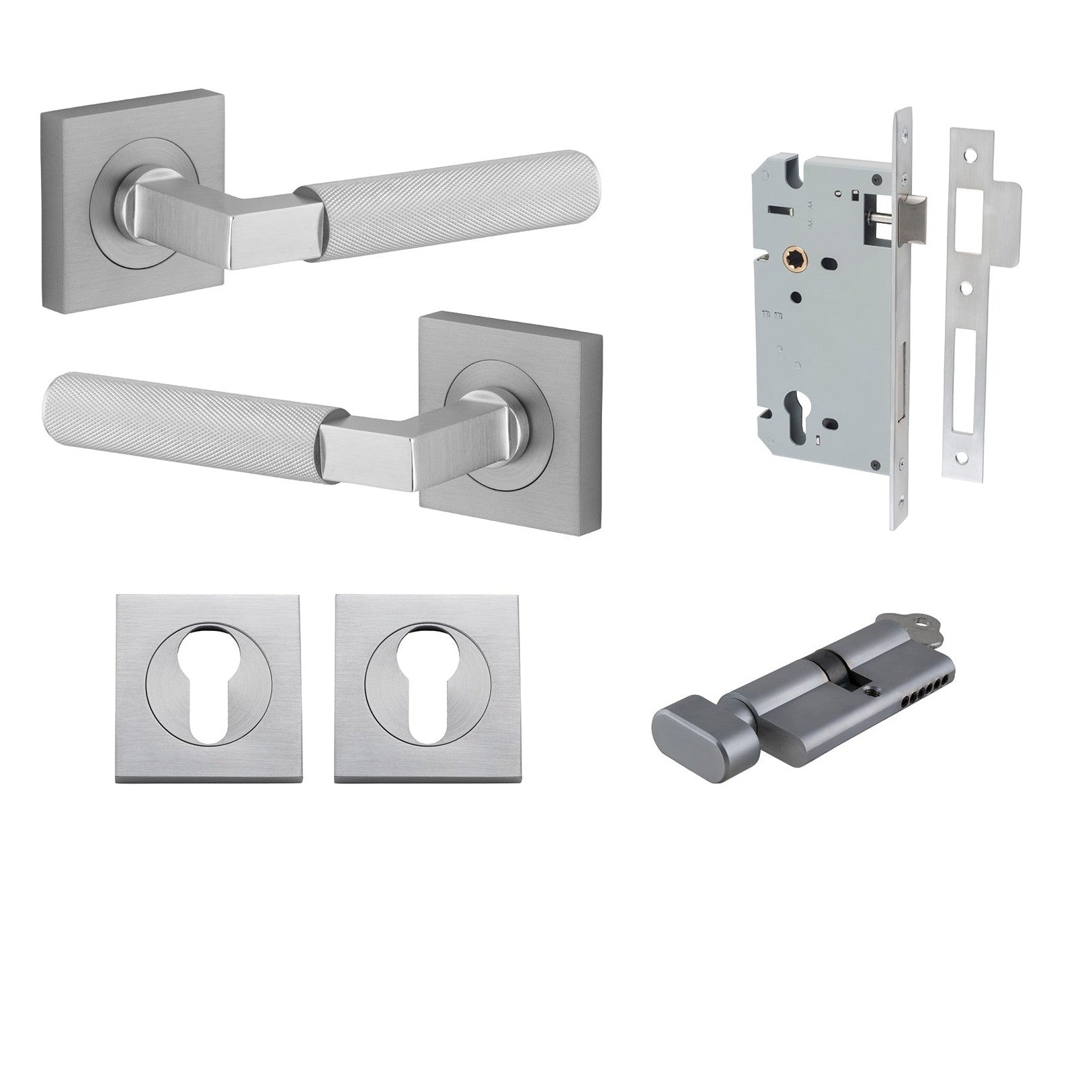 Iver Door Handle Brunswick Rose Square Pair Key/Thumb Brushed Chrome Entrance Kit