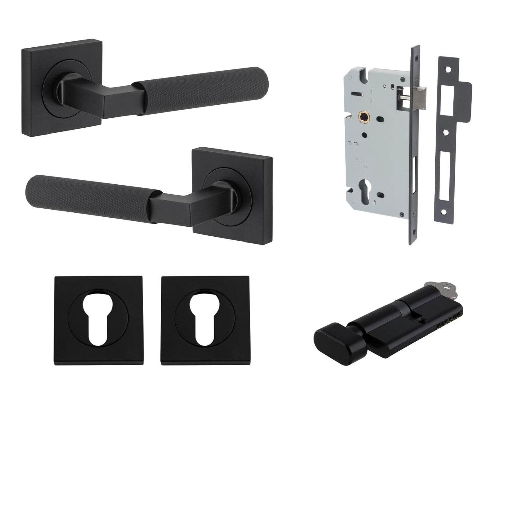 Iver Door Handle Brunswick Rose Square Pair Key/Thumb Matt Black Entrance Kit