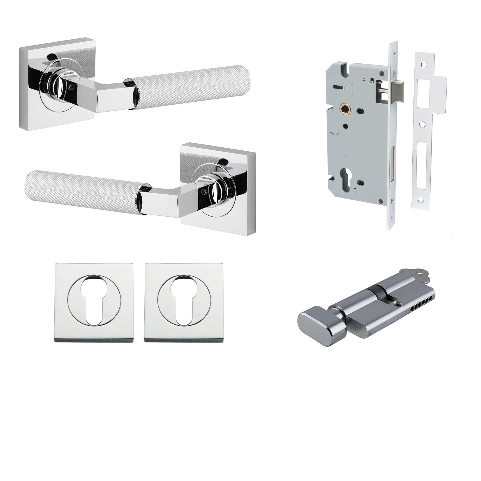 Iver Door Handle Brunswick Rose Square Pair Key/Thumb Polished Chrome Entrance Kit