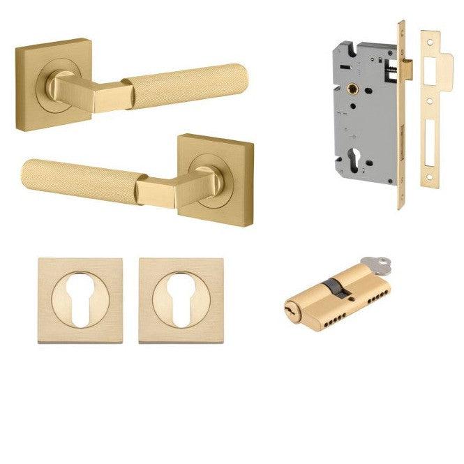 Iver Door Handle Brunswick Square Rose Pair Key/Key Brushed Gold PVD Entrance Kit