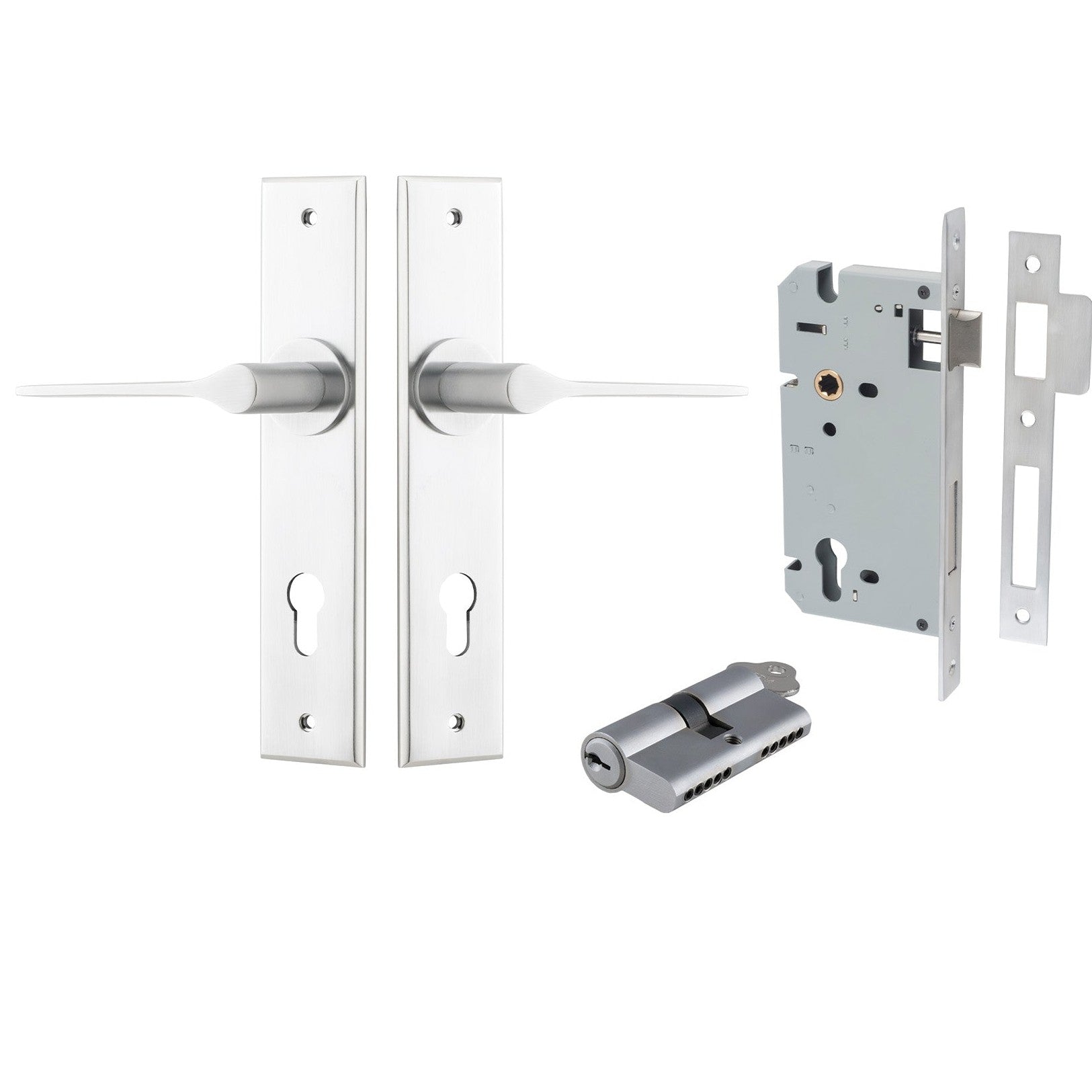 Iver Door Handle Como Chamfered Key/Key Brushed Chrome Entrance Kit