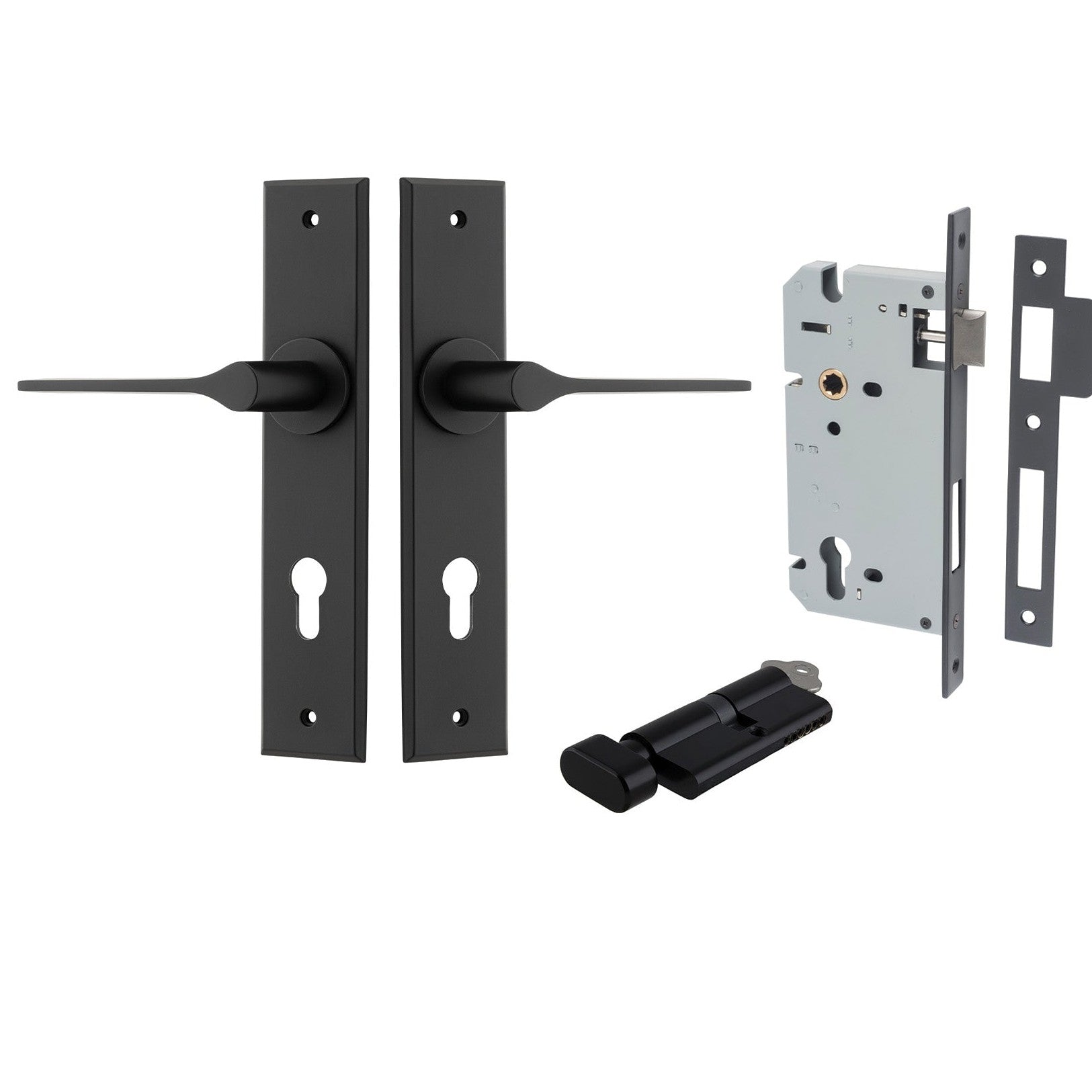 Iver Door Handle Como Chamfered Key/Thumb Matt Black Entrance Kit