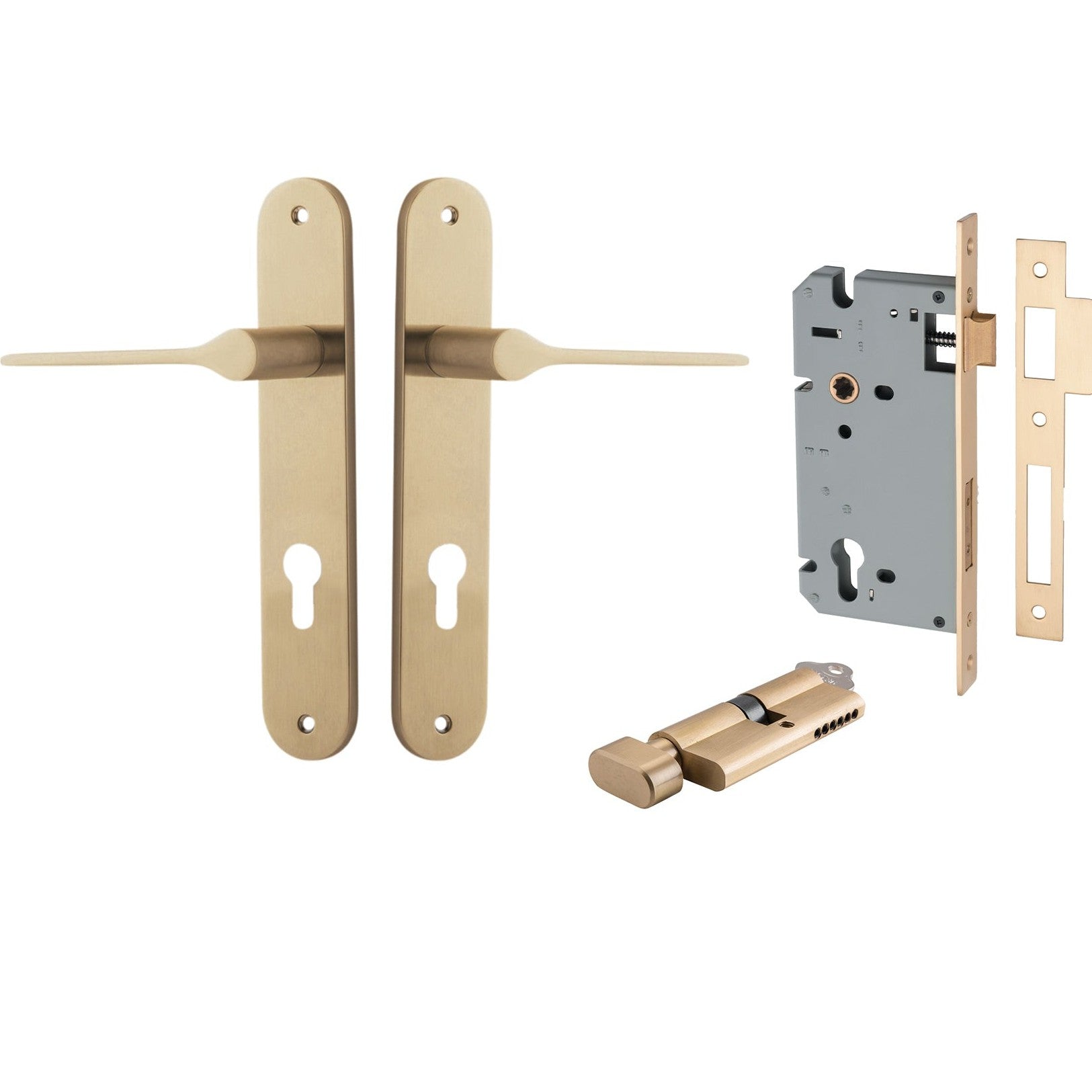 Iver Door Handle Como Oval Euro Pair Key/Thumb Brushed Brass Entrance Kit
