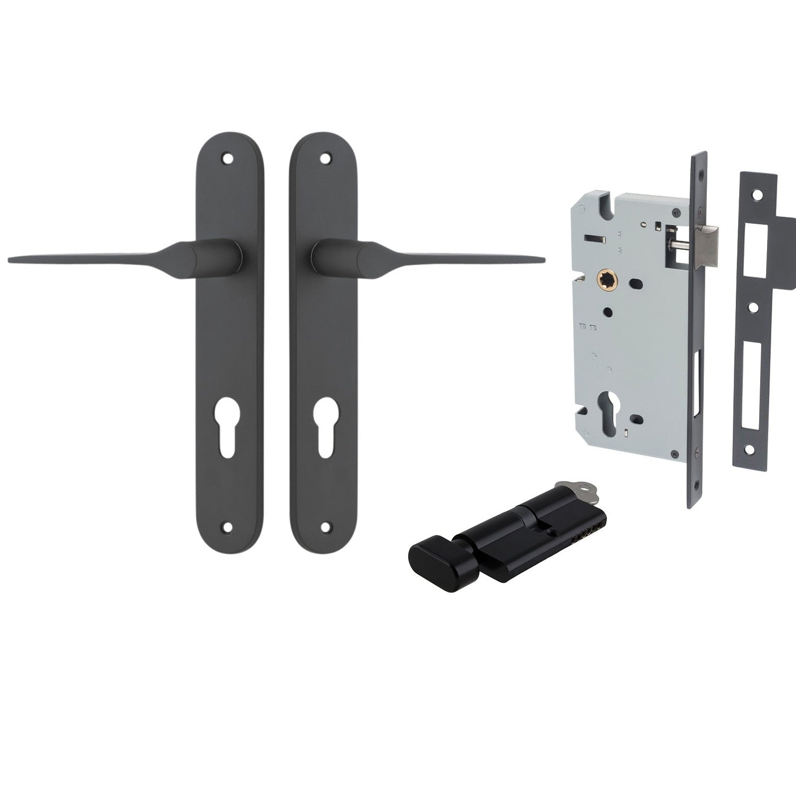 Iver Door Handle Como Oval Euro Pair Key/Thumb Matt Black Entrance Kit
