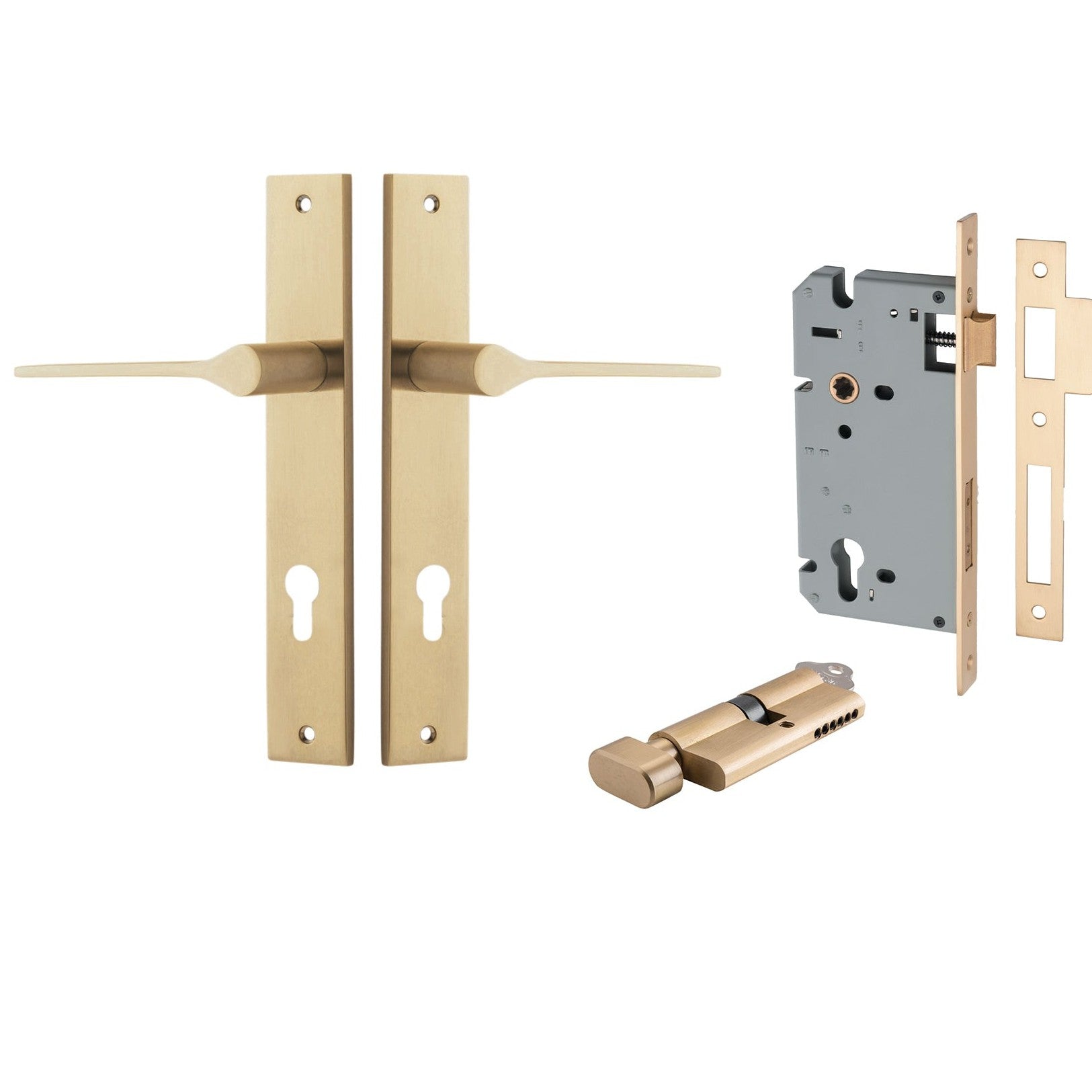 Iver Door Handle Como Rectangular Euro Pair Key/Thumb Brushed Brass Entrance Kit