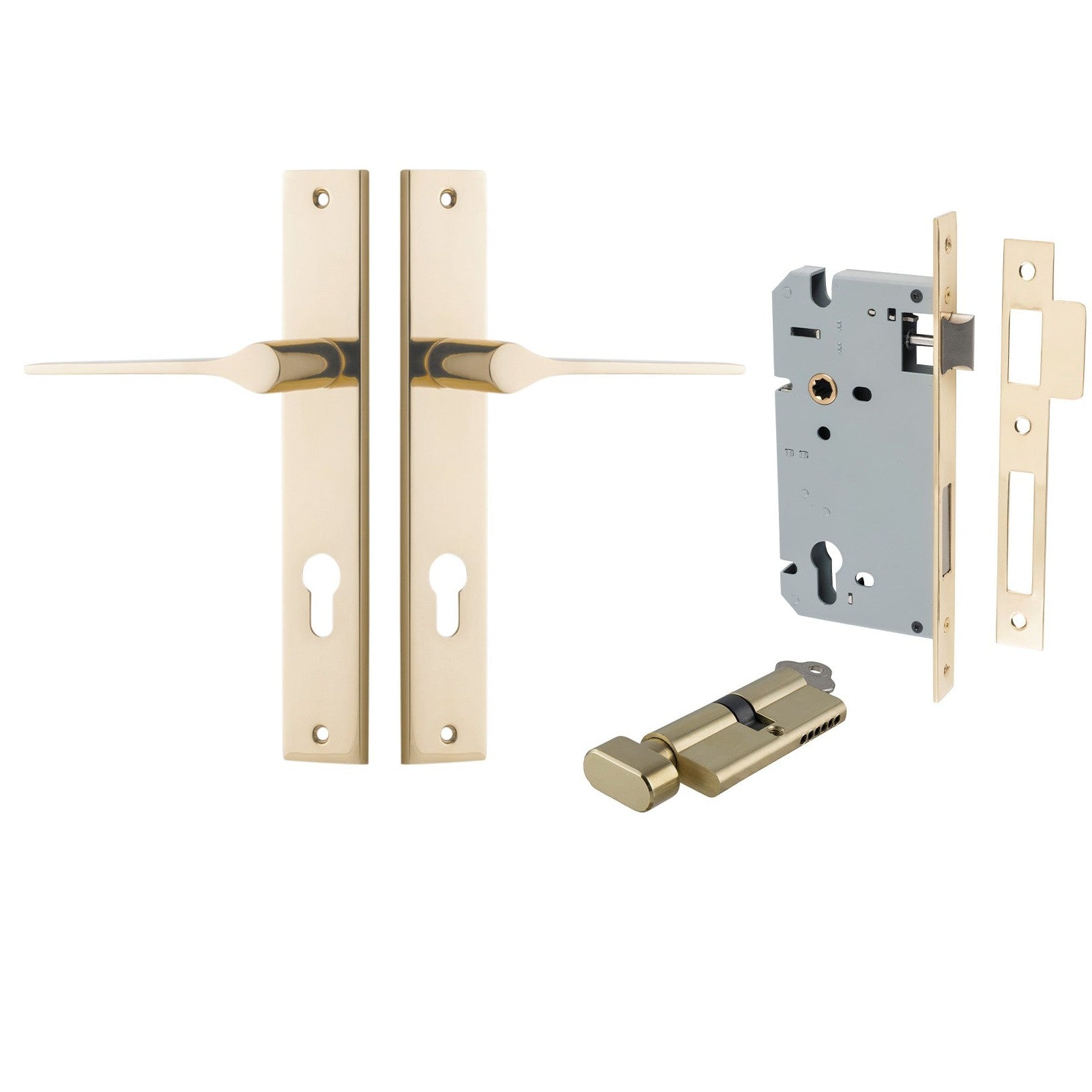 Iver Door Handle Como Rectangular Euro Pair Key/Thumb Polished Brass Entrance Kit