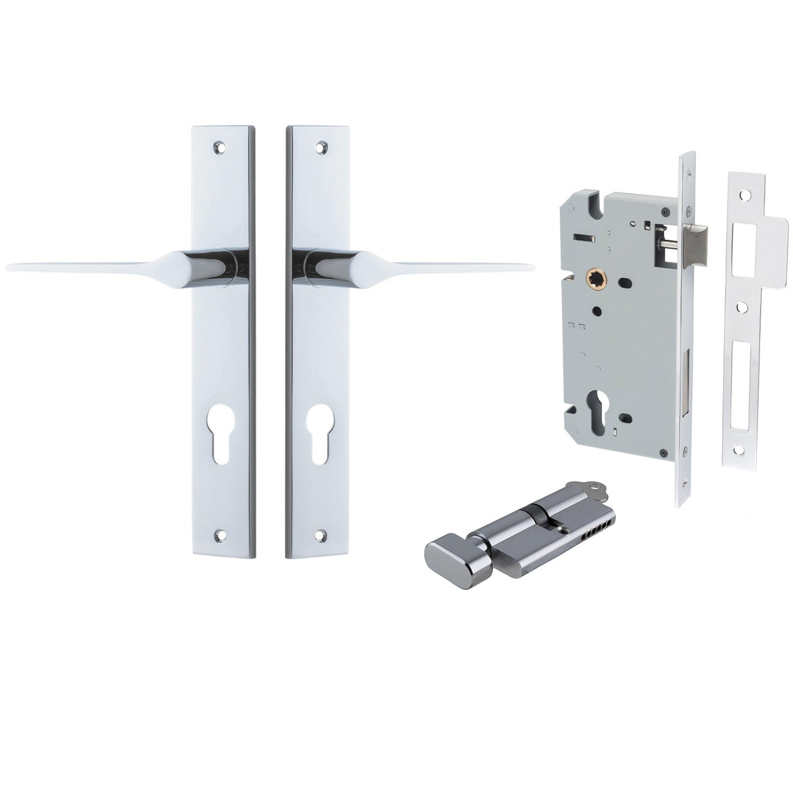 Iver Door Handle Como Rectangular Euro Pair Key/Thumb Polished Chrome Entrance Kit