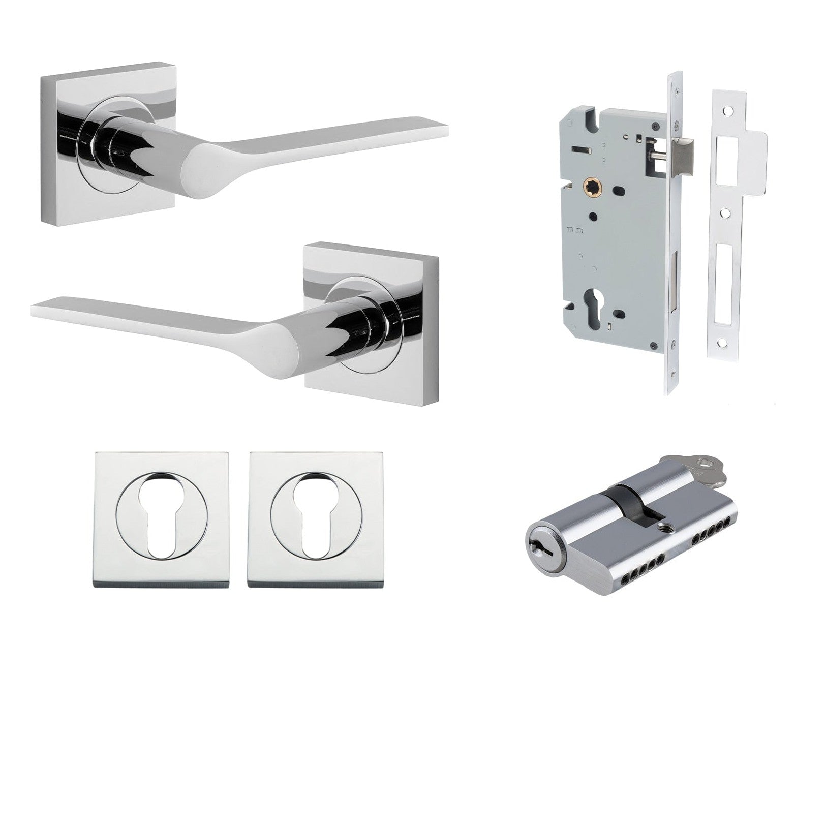 Iver Door Handle Como Rose Square Pair Key/Key Polished Chrome Entrance Kit