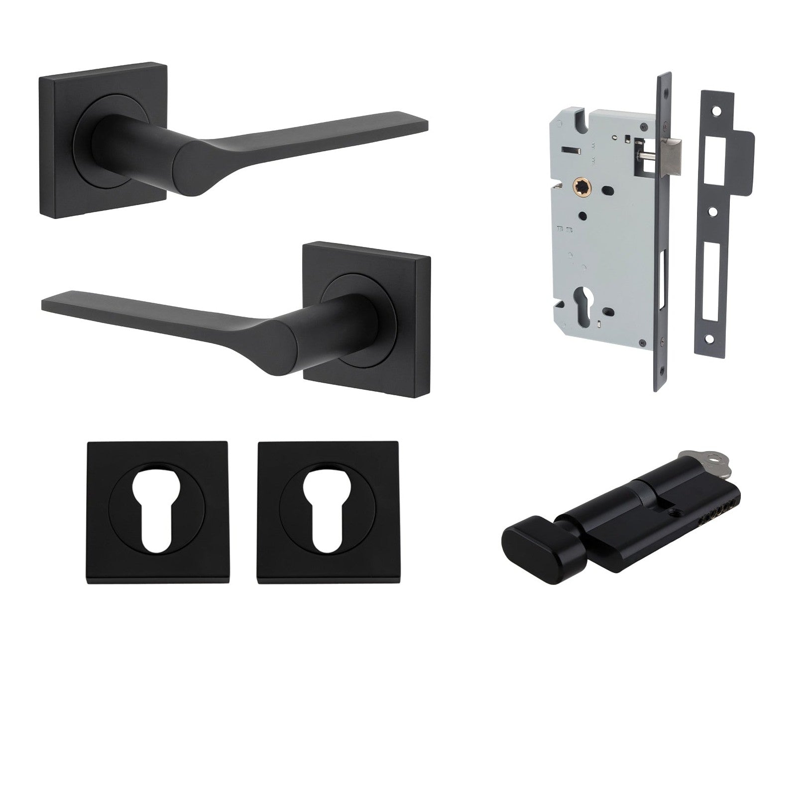 Iver Door Handle Como Rose Square Pair Key/Thumb Matt Black Entrance Kit
