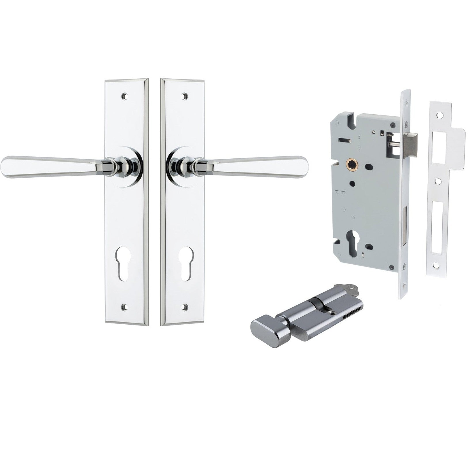 Iver Door Handle Copenhagen Chamfered Key/Thumb Polished Chrome Entrance Kit