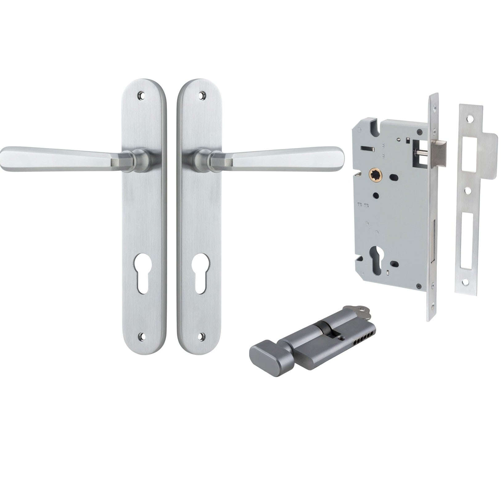 Iver Door Handle Copenhagen Oval Euro Pair Key/Thumb Brushed Chrome Entrance Kit