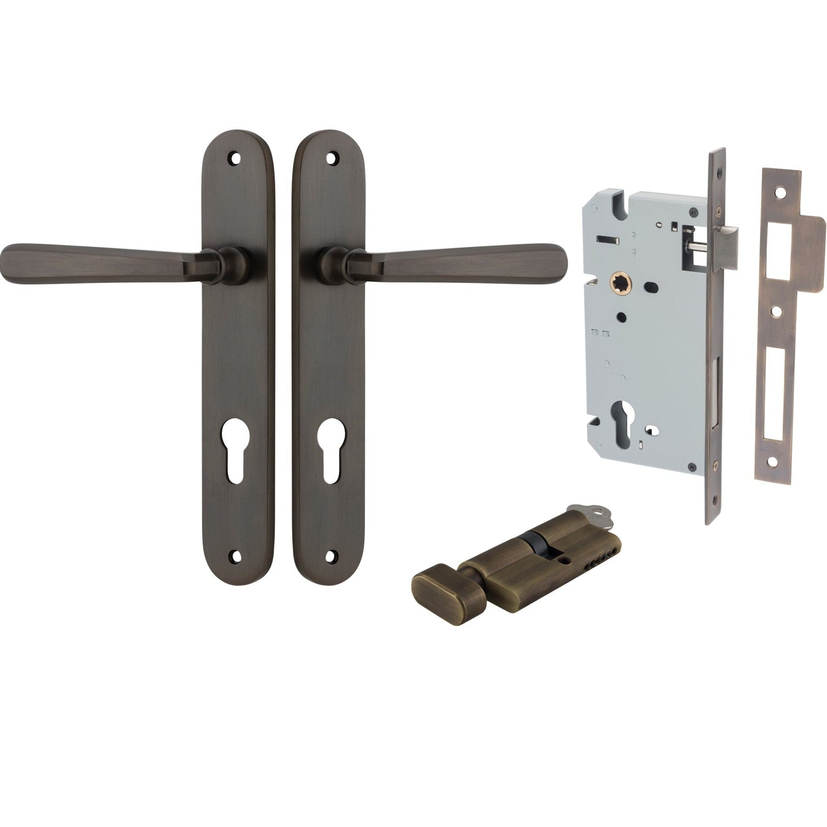 Included in Kit: Door Lever Copenhagen Oval Euro Pair Signature Brass CTC85mm H240xW40xP61mm Entrance Kit, Mortice Lock Euro Signature Brass CTC85mm Backset 60mm, Euro Cylinder Key Thumb 6 Pin Signature Brass L70mm KA1