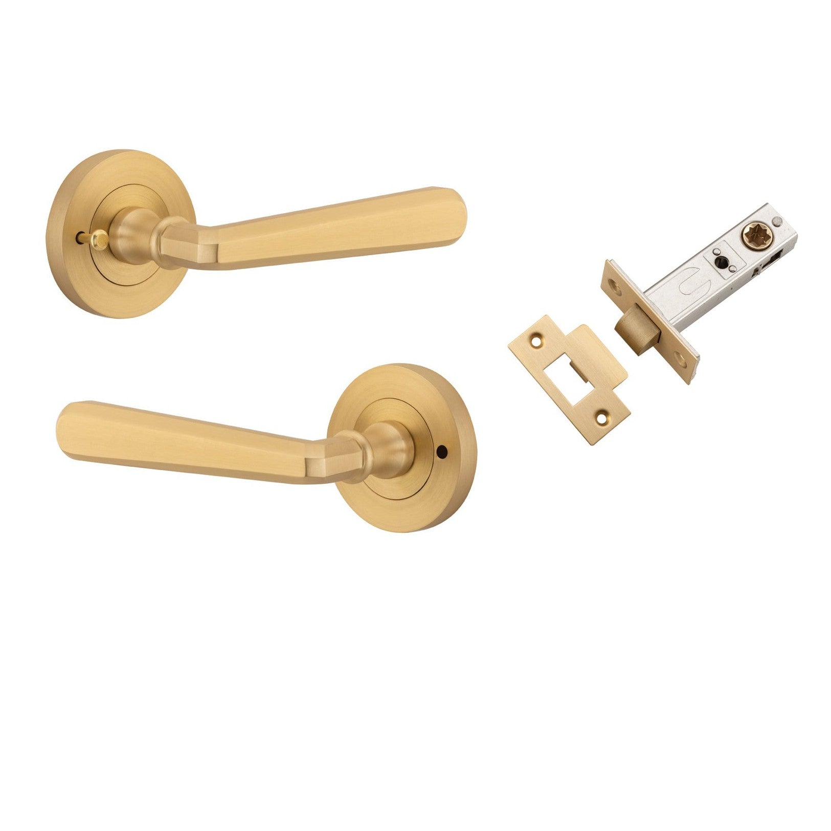 Iver Door Handle Copenhagen Round Rose Inbuilt Privacy Pair Kit Brushed Brass