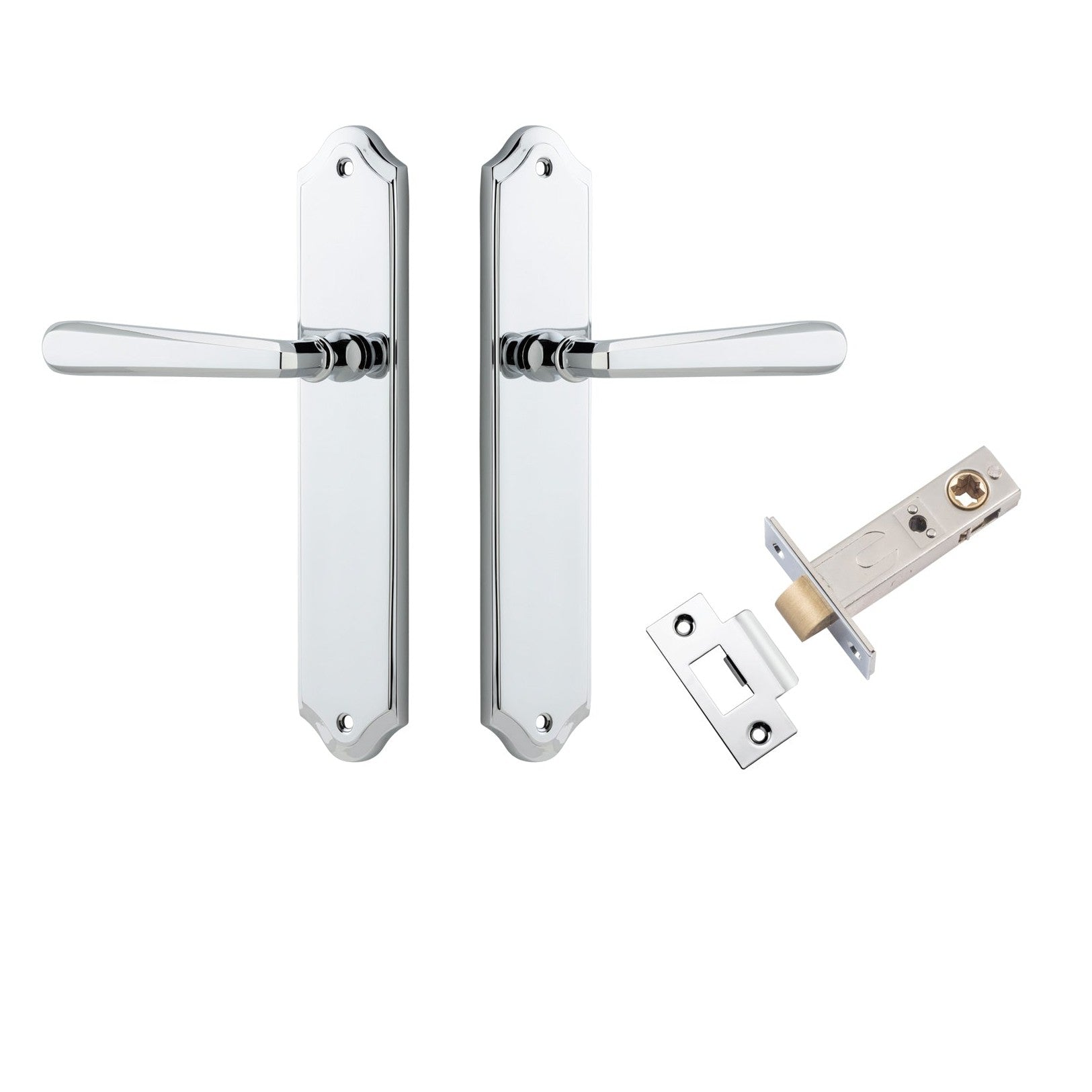 Included in Kit: Door Lever Copenhagen Shouldered Latch Pair Polished Chrome H250xW48xP61mm Passage Kit, Tube Latch Split Cam 'T' Striker Polished Chrome Backset 60mm