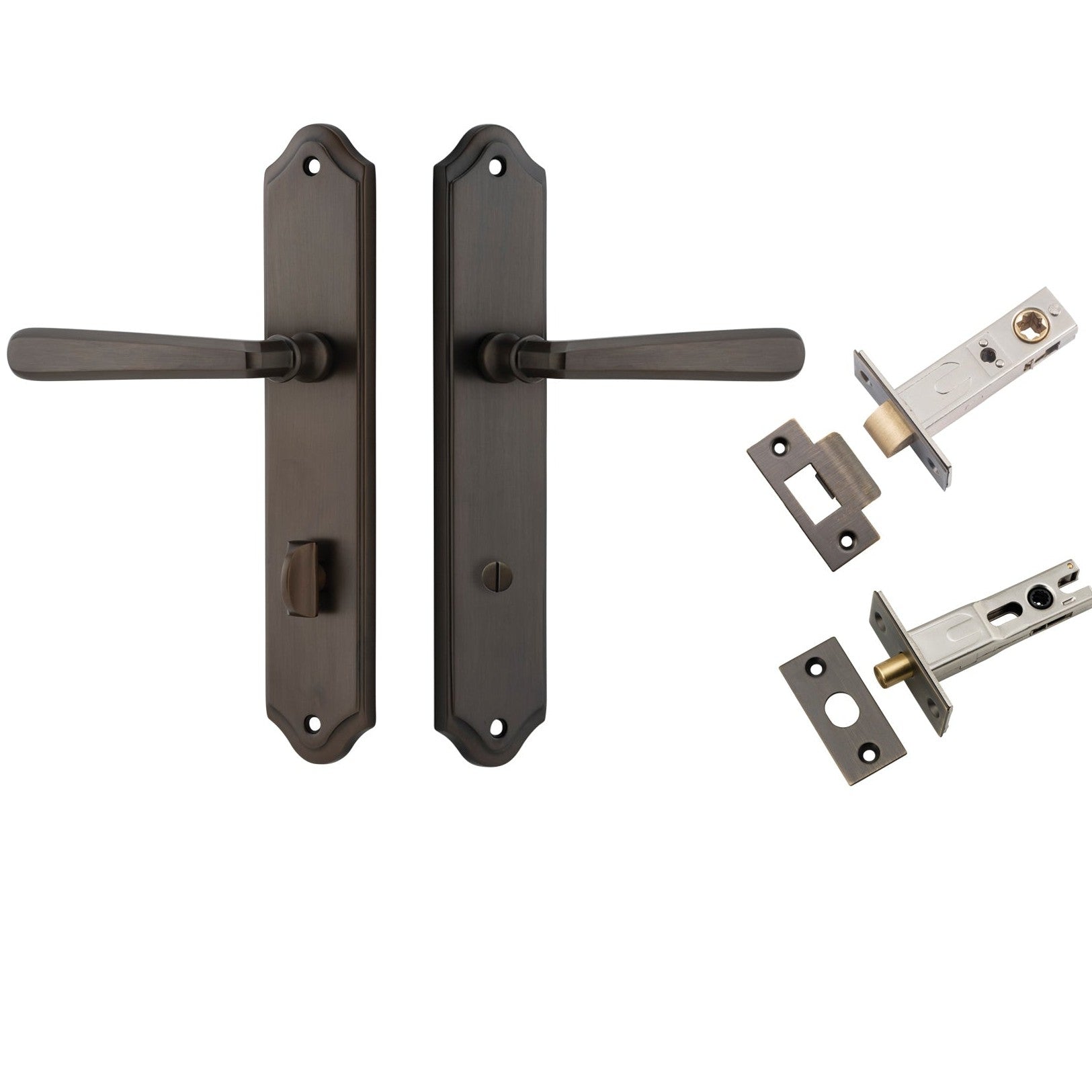 Included in Kit: Door Lever Copenhagen Shouldered Privacy Pair Signature Brass CTC85mm H250xW48xP61mm Inbuilt Privacy Kit, Tube Latch Split Cam 'T' Striker Signature Brass Backset 60mm, Privacy Bolt Round Bolt Signature Brass Backset 60mm