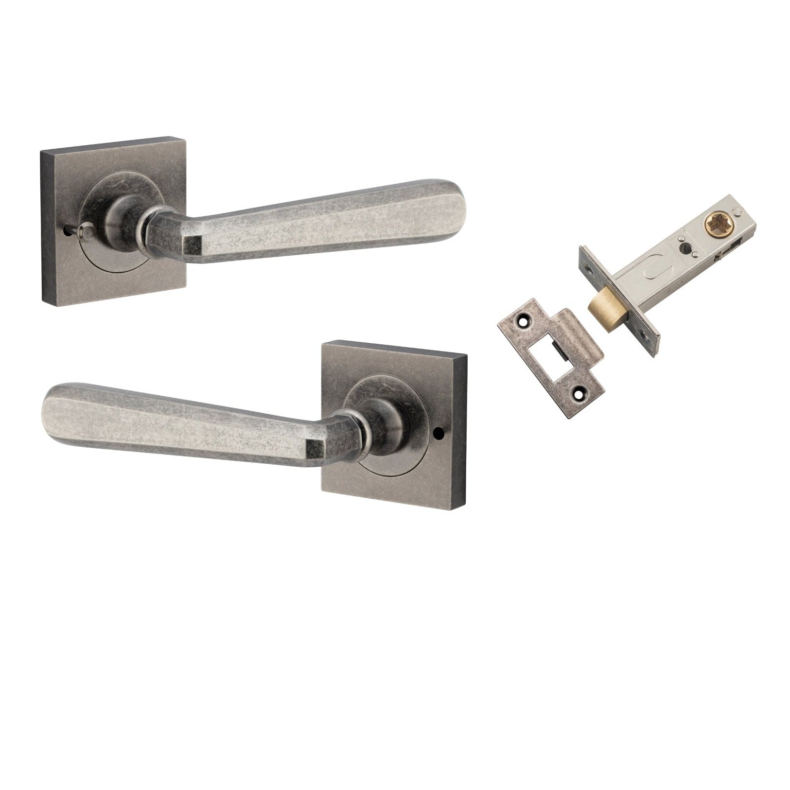 Iver Door Handle Copenhagen Square Rose Inbuilt Privacy Pair Kit Distressed Nickel