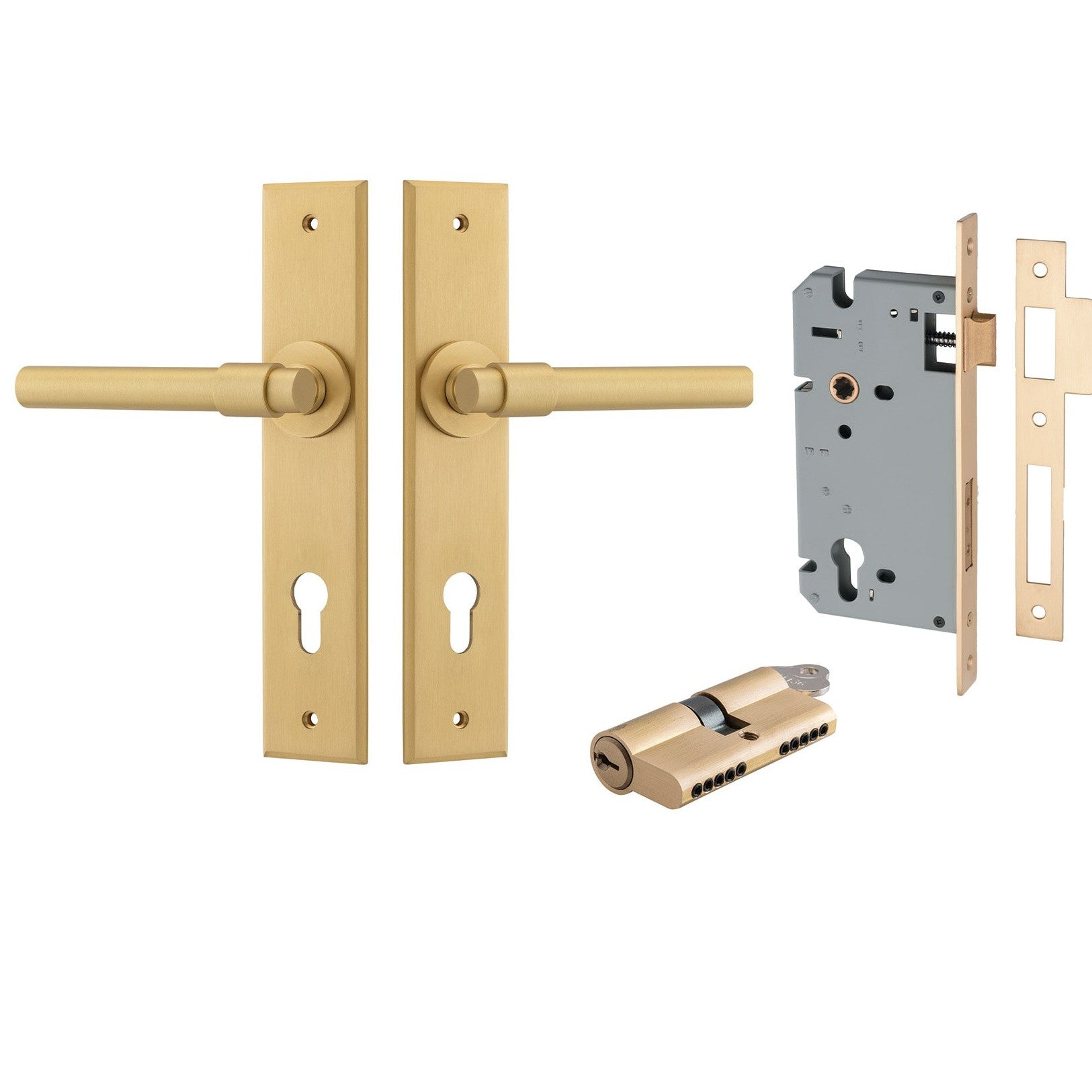 Iver Door Handle Helsinki Chamfered Key/Key Brushed Brass Entrance Kit