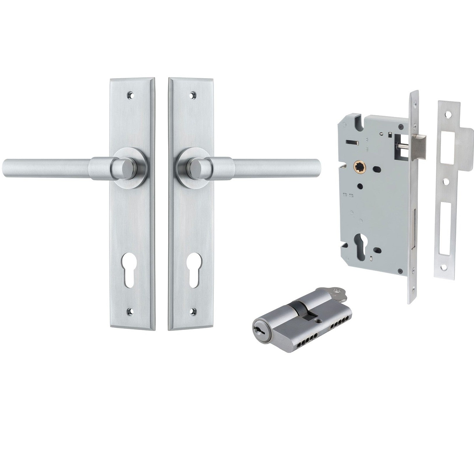 Iver Door Handle Helsinki Chamfered Key/Key Brushed Chrome Entrance Kit