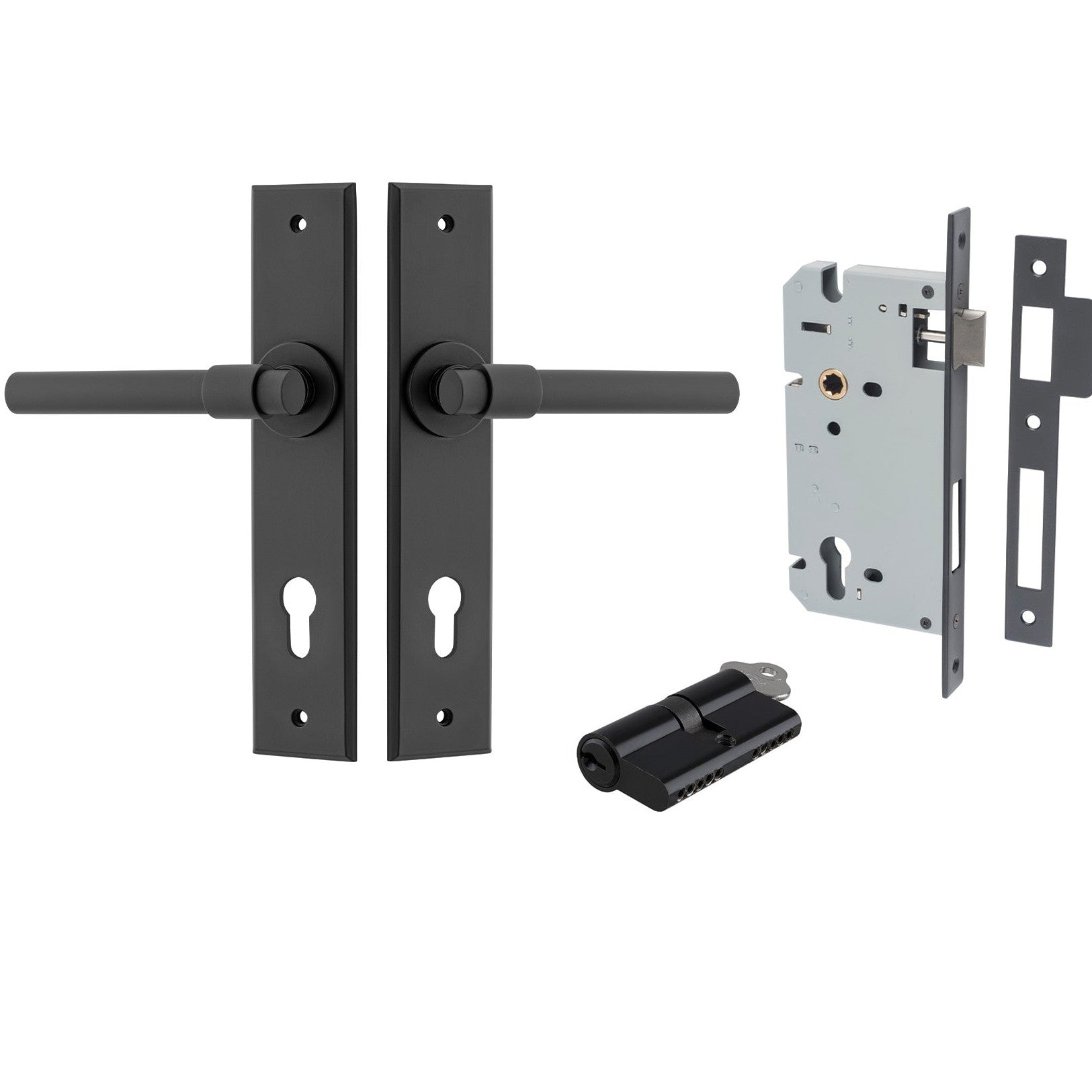 Iver Door Handle Helsinki Chamfered Key/Key Matt Black Entrance Kit