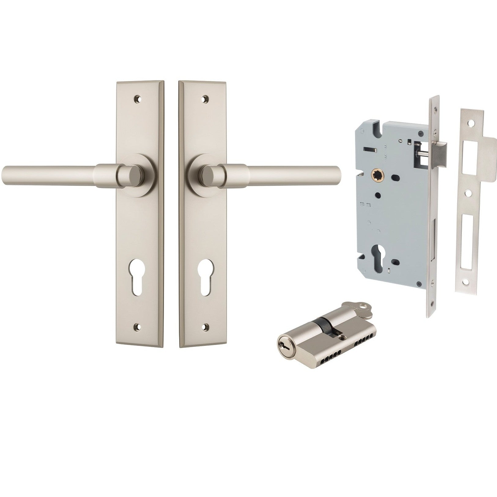 Iver Door Handle Helsinki Chamfered Key/Key Satin Nickel Entrance Kit