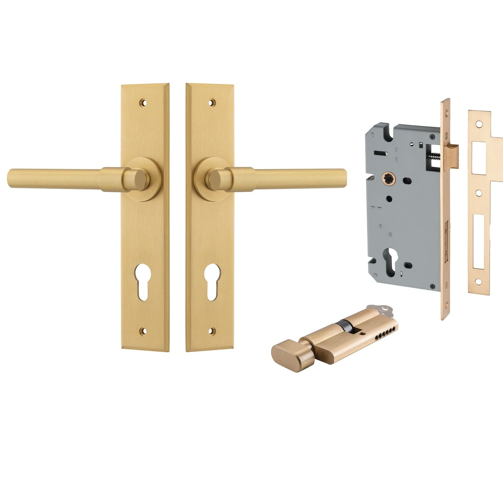 Iver Door Handle Helsinki Chamfered Key/Thumb Brushed Brass Entrance Kit