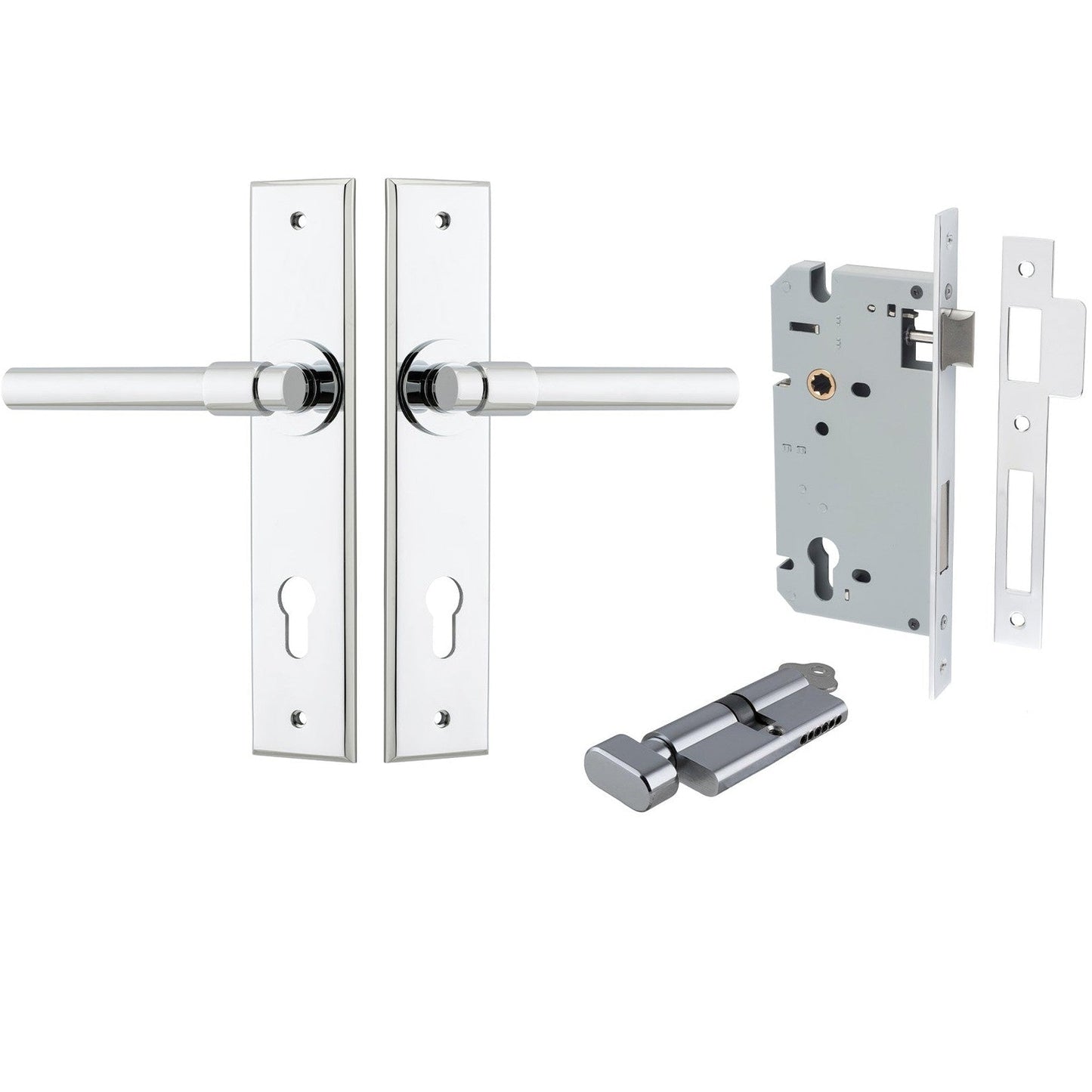 Iver Door Handle Helsinki Chamfered Key/Thumb Polished Chrome Entrance Kit