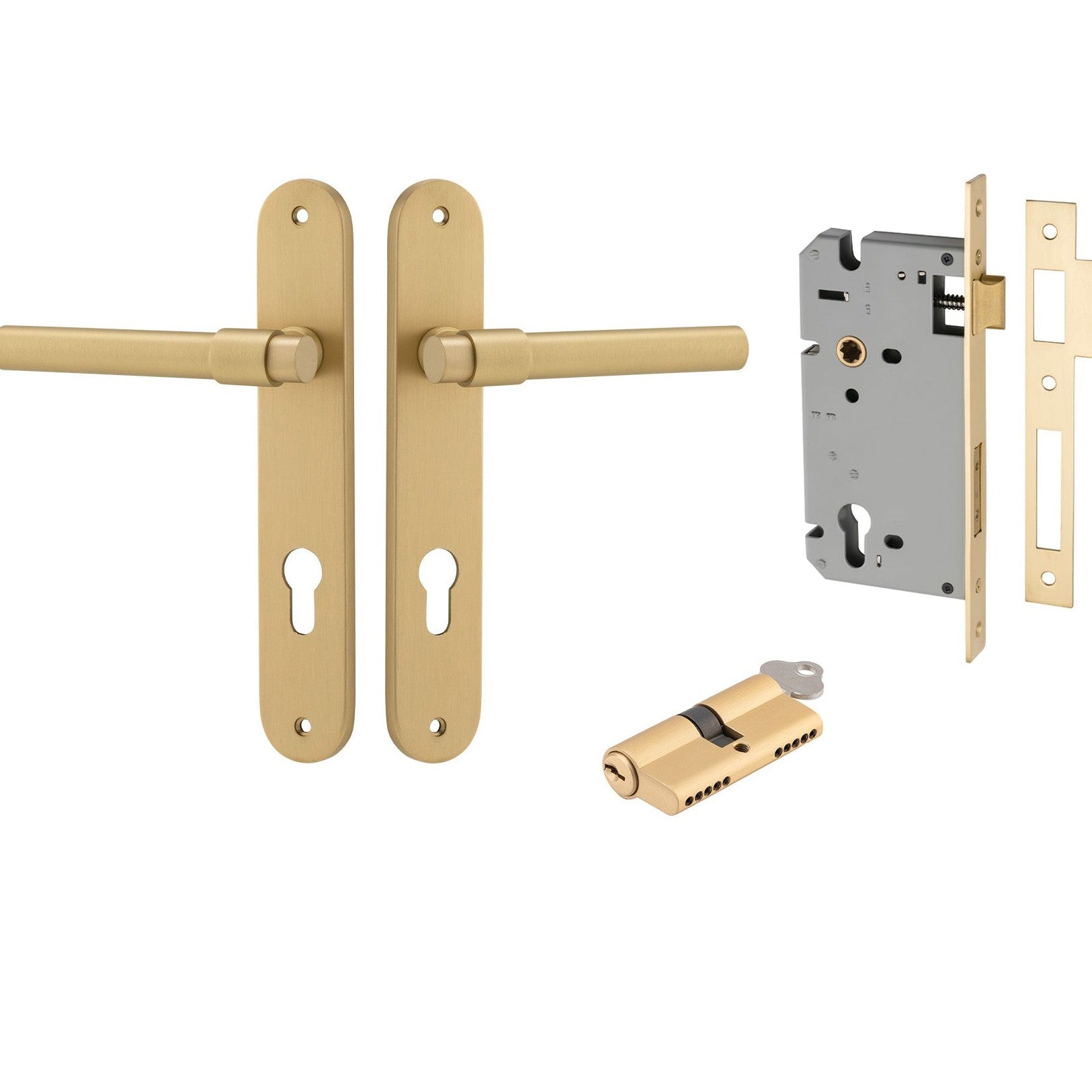 Iver Door Handle Helsinki Oval Euro Pair Key/Key Brushed Gold PVD Entrance Kit