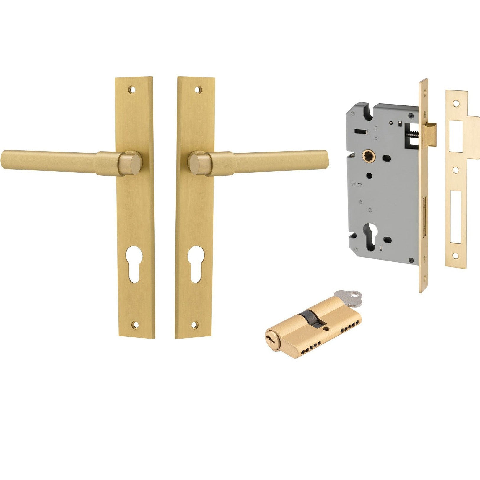 Iver Door Handle Helsinki Rectangular Euro Pair Key/Key Brushed Gold PVD Entrance Kit