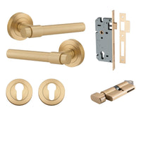 Iver Door Handle Helsinki Round Rose Key/Thumb Brushed Brass Entrance Kit