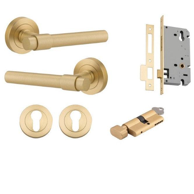 Iver Door Handle Helsinki Round Rose Key/Thumb Brushed Gold PVD Entrance Kit