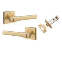 Iver Door Handle Helsinki Square Rose Inbuilt Privacy Pair Kit Brushed Brass