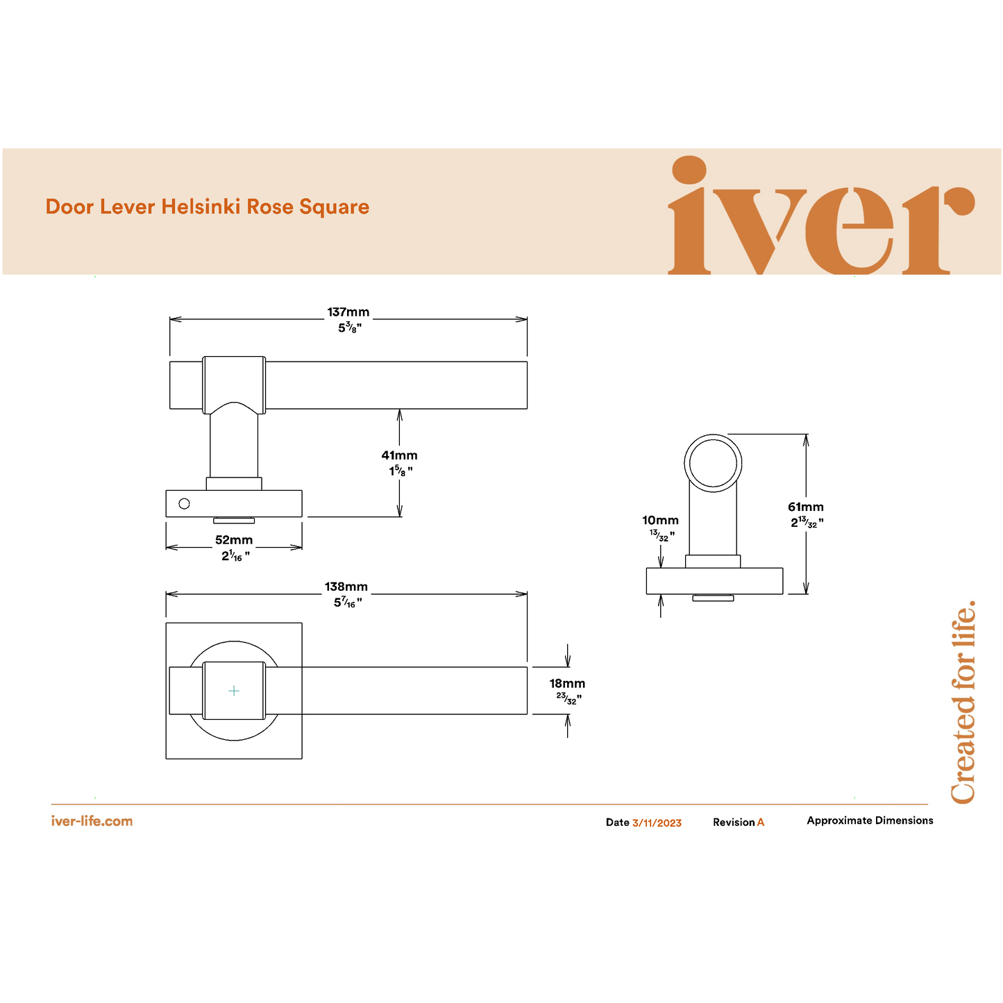 Iver Door Handle Helsinki Square Rose Key/Key Brushed Brass Entrance Kit