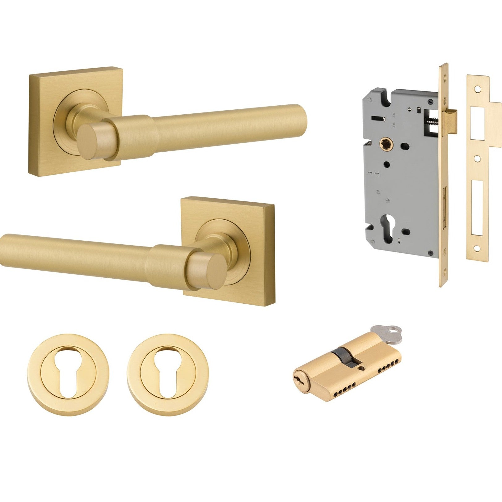 Iver Door Handle Helsinki Square Rose Key/Key Brushed Gold PVD Entrance Kit