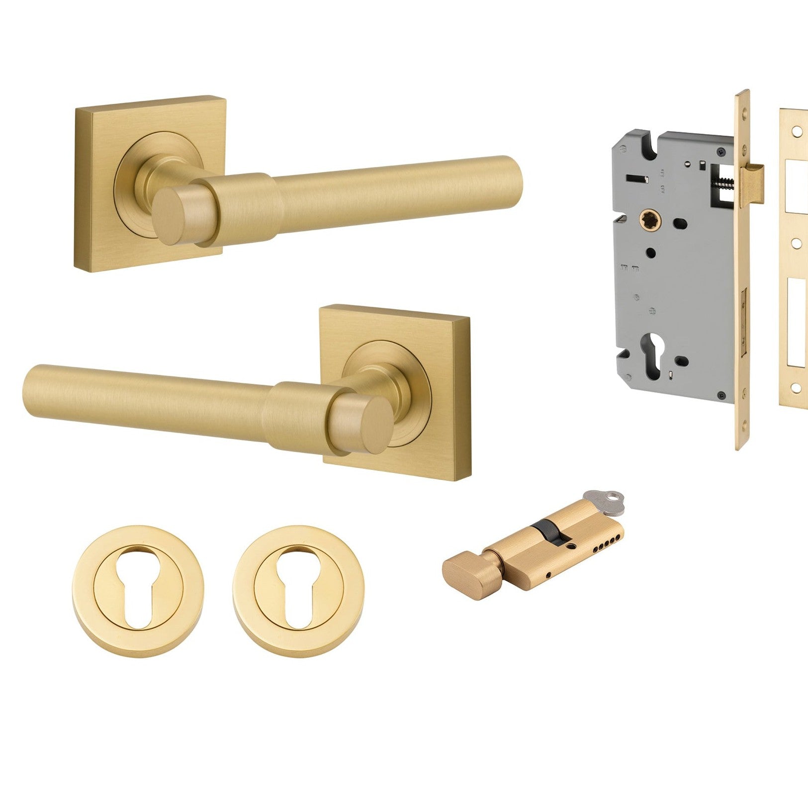 Iver Door Handle Helsinki Square Rose Key/Thumb Brushed Gold PVD Entrance Kit