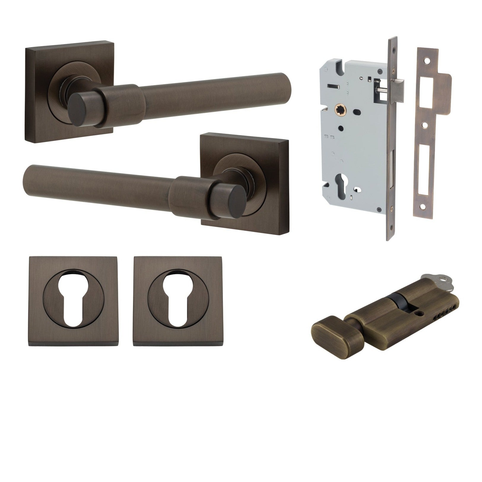 Iver Door Handle Helsinki Square Rose Key/Thumb Signature Brass Entrance Kit