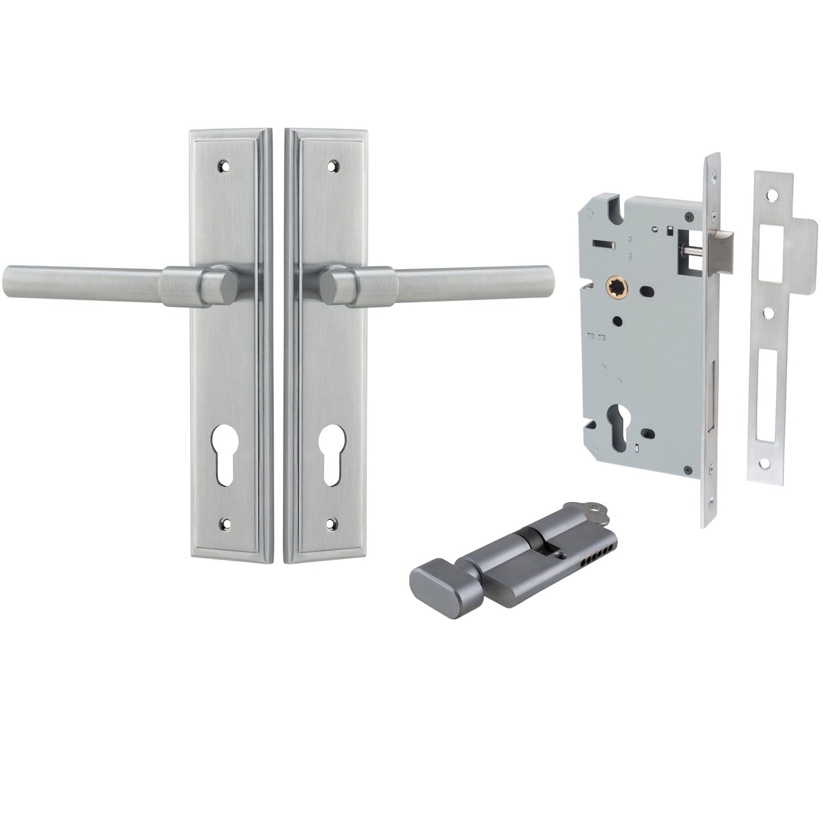 Iver Door Handle Helsinki Stepped Euro Pair Key/Thumb Brushed Chrome Entrance Kit