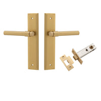 Included in Kit: Door Lever Helsinki Stepped Latch Pair Brushed Brass H237xW50xP44mm Passage Kit, Tube Latch Split Cam 'T' Striker Brushed Brass Backset 60mm