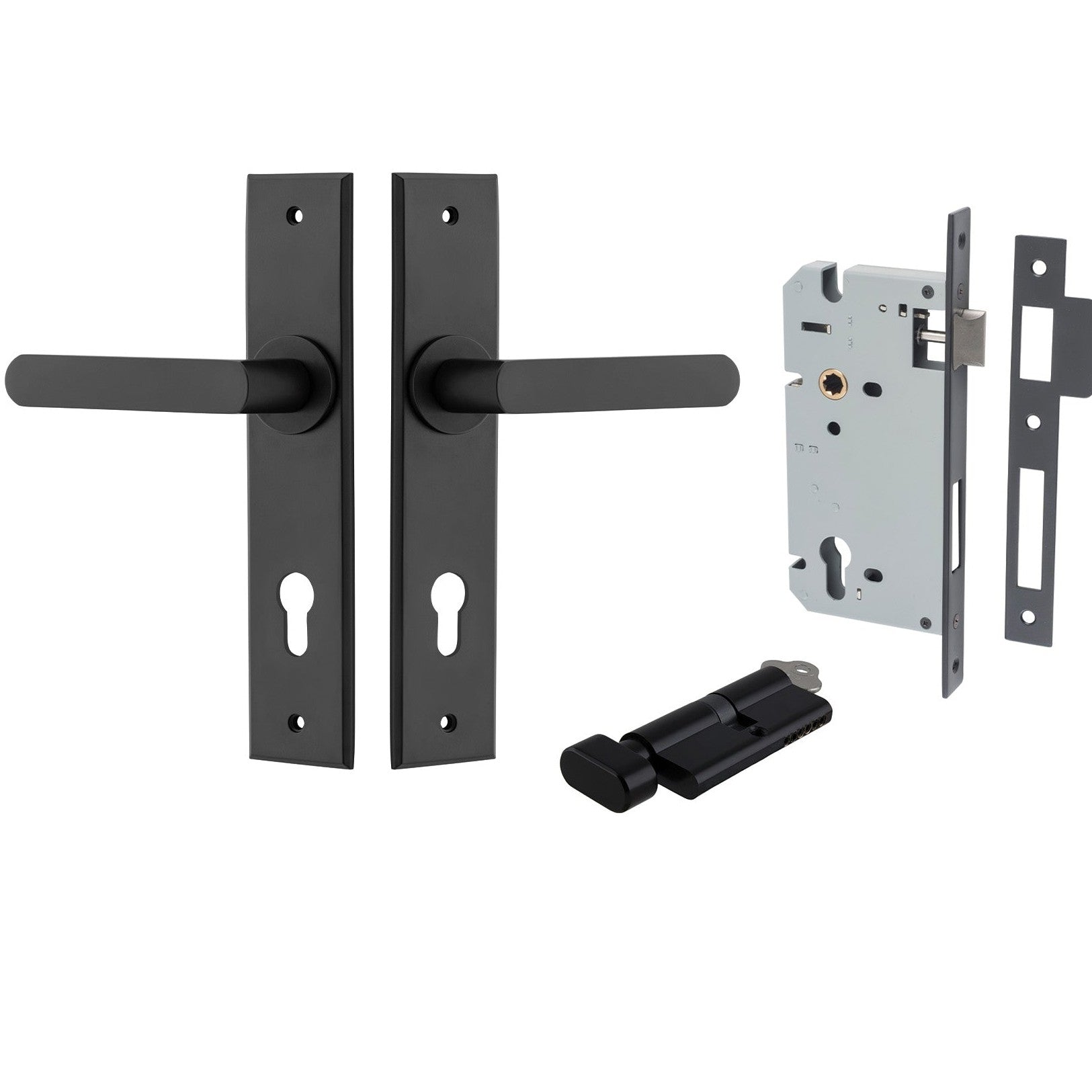 Iver Door Handle Osaka Chamfered Key/Thumb Matt Black Entrance Kit