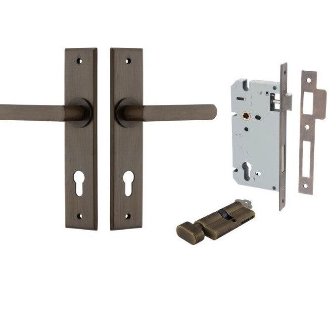 Iver Door Handle Osaka Chamfered Key/Thumb Signature Brass Entrance Kit