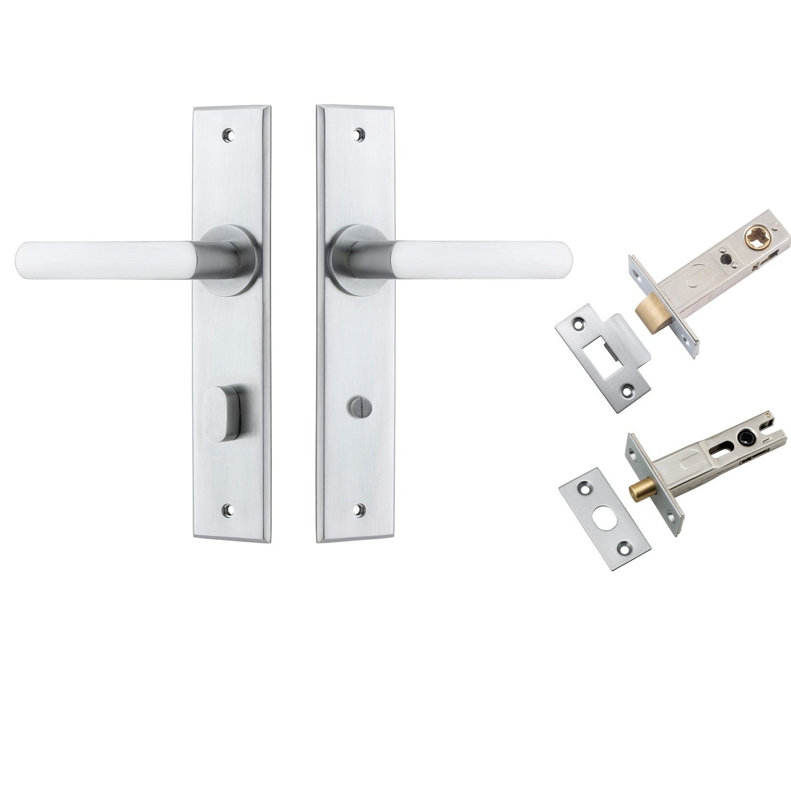 Iver Door Handle Osaka Chamfered Privacy Brushed Chrome Privacy Kit