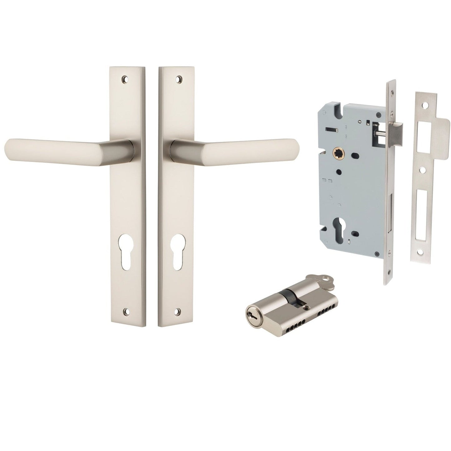 Iver Door Handle Osaka Rectangular Euro Pair Key/Key Satin Nickel Entrance Kit