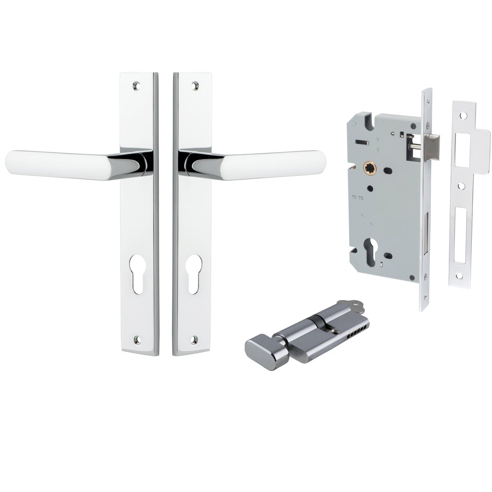 Iver Door Handle Osaka Rectangular Euro Pair Key/Thumb Polished Chrome Entrance Kit