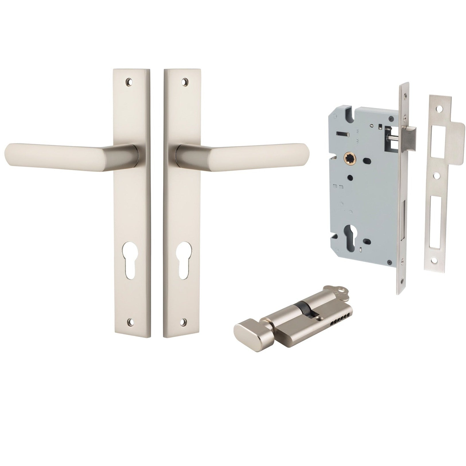 Iver Door Handle Osaka Rectangular Euro Pair Key/Thumb Satin Nickel Entrance Kit