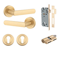 Iver Door Handle Osaka Round Rose Key/Key Brushed Brass Entrance Kit