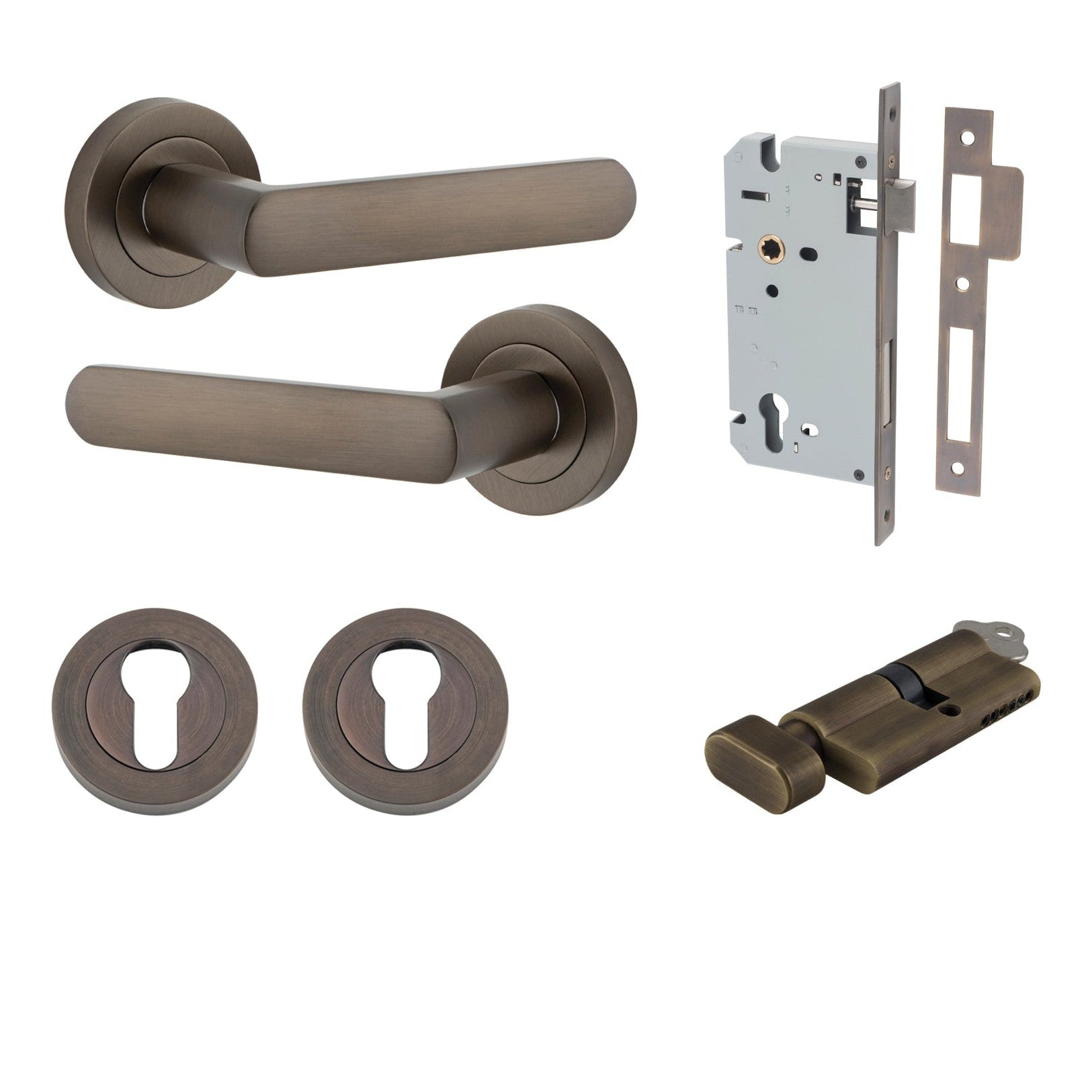 Iver Door Handle Osaka Round Rose Key/Thumb Signature Brass Entrance Kit