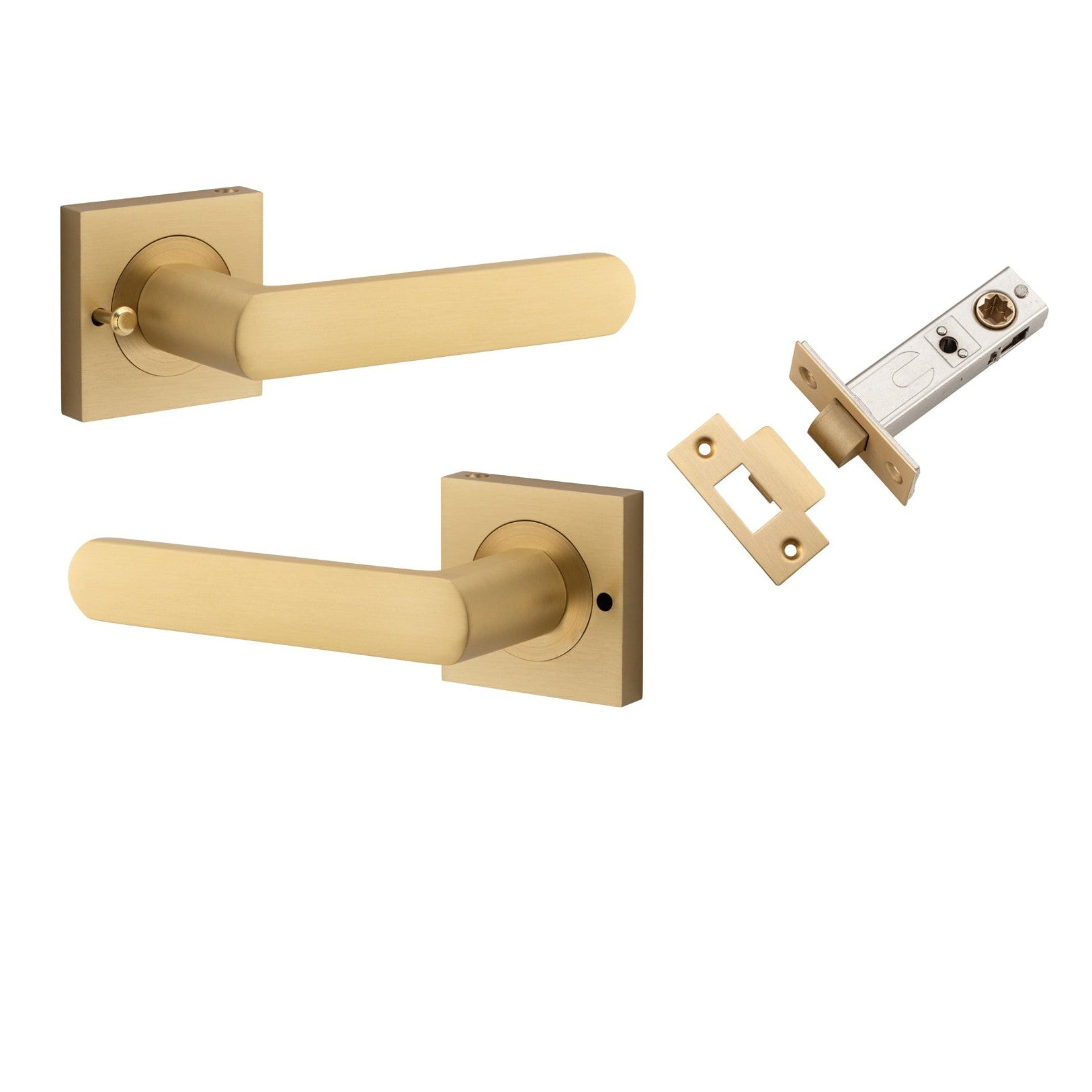 Iver Door Handle Osaka Square Rose Inbuilt Privacy Pair Kit Brushed Brass