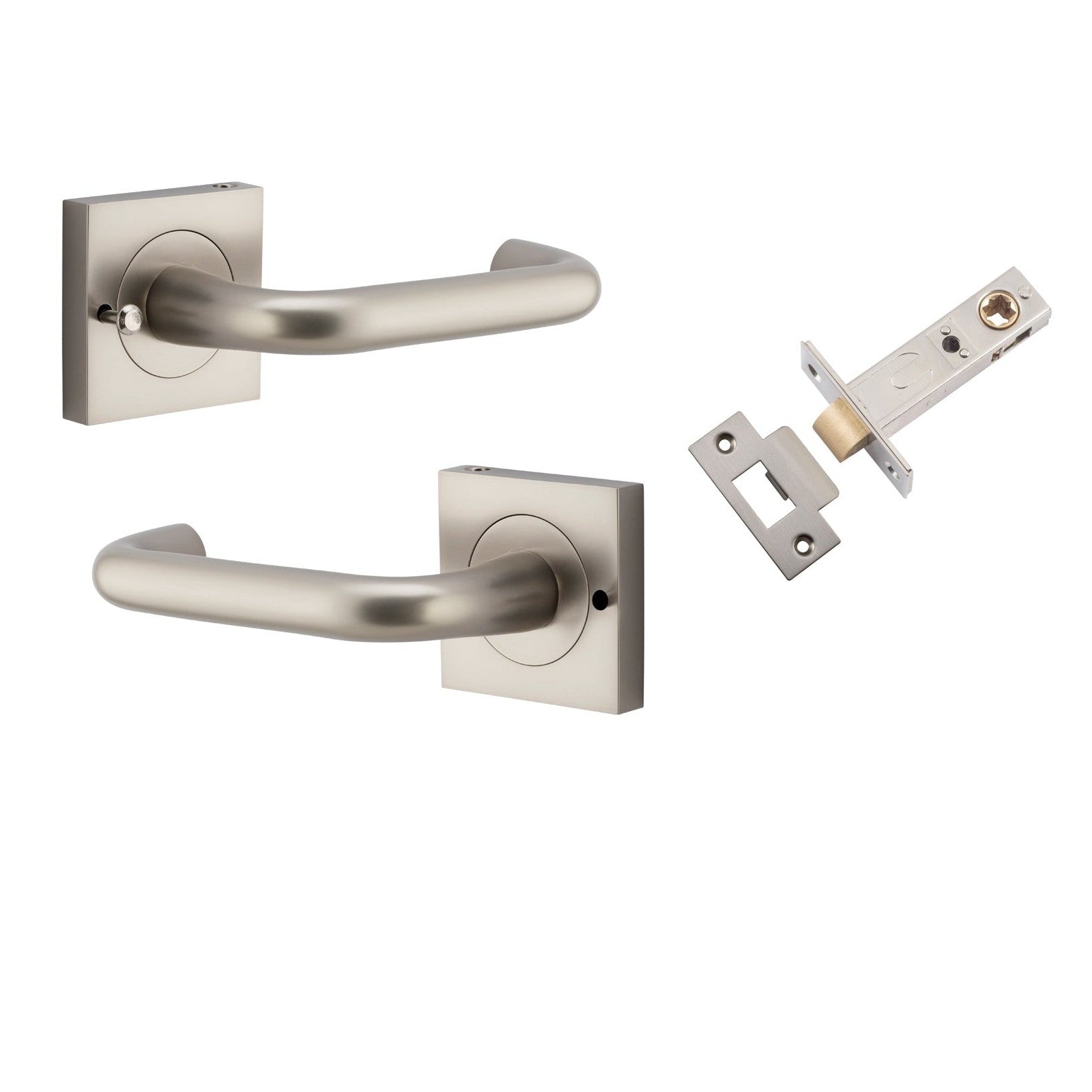 Iver Door Handle Oslo Square Rose Inbuilt Privacy Pair Kit Satin Nickel