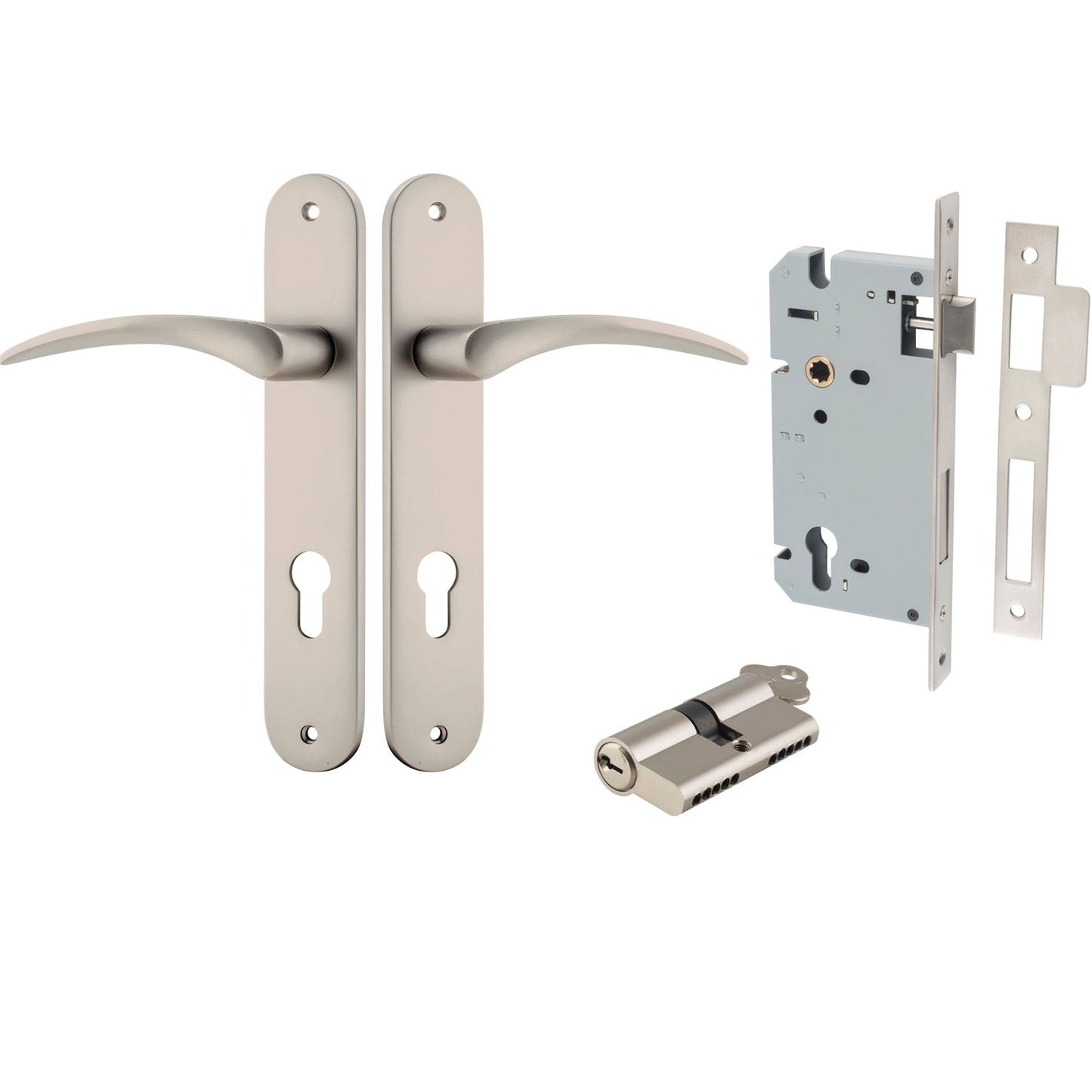 Iver Door Handle Oxford Oval Euro Key/Key Satin Nickel Entrance Kit