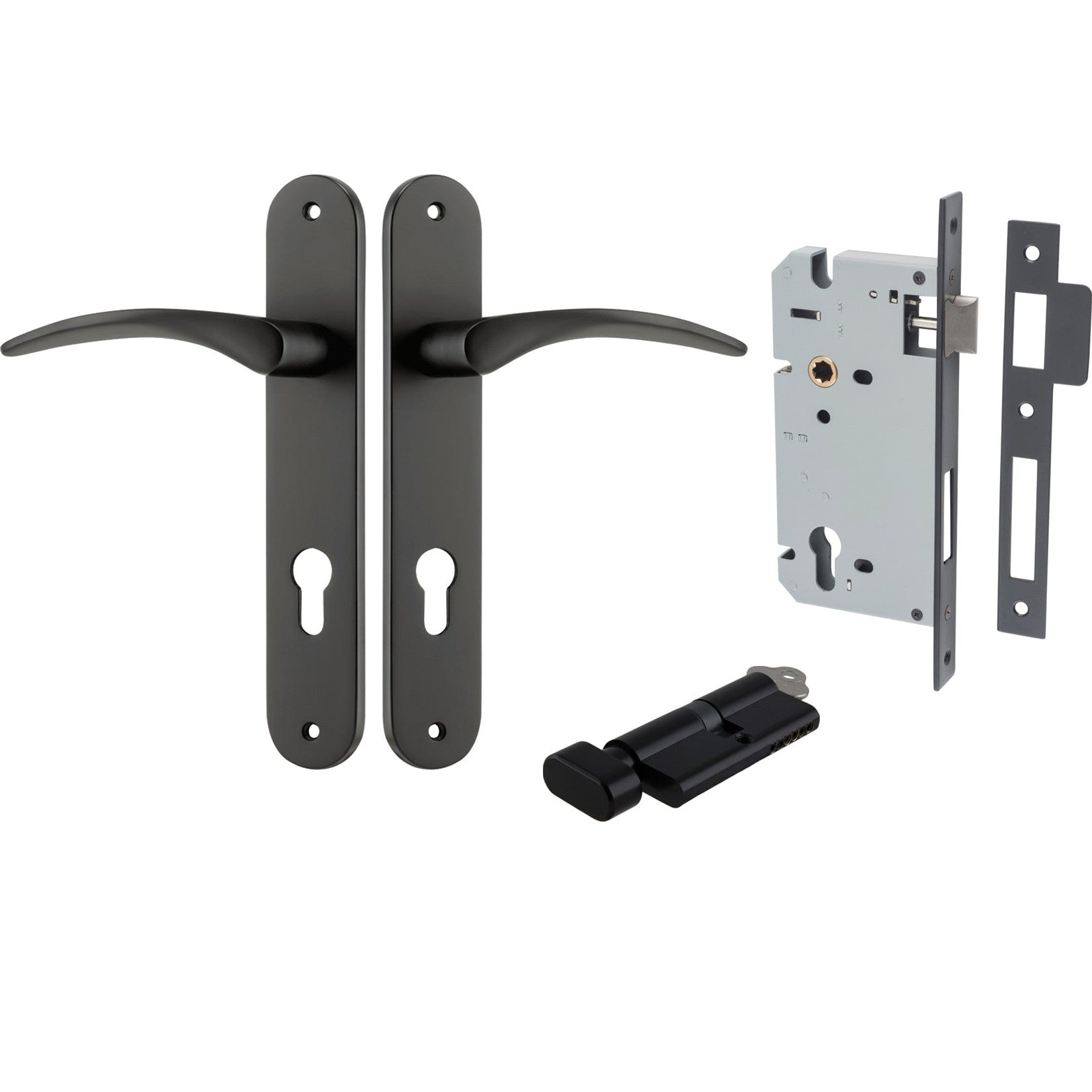 Iver Door Handle Oxford Oval Euro Key/Thumb Matt Black Entrance Kit